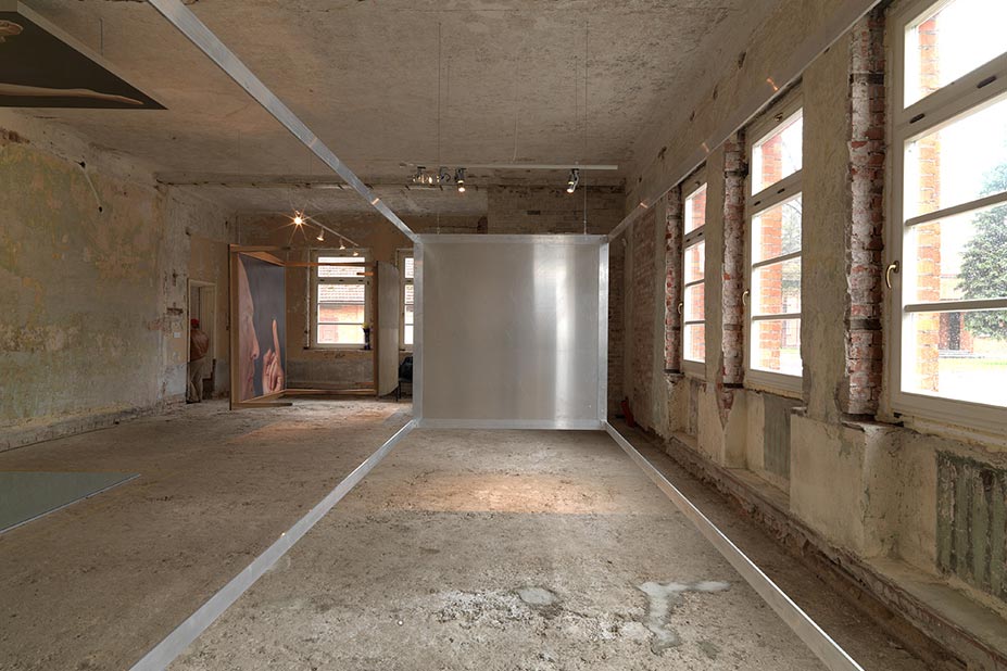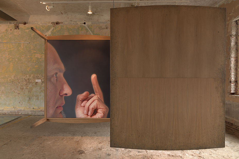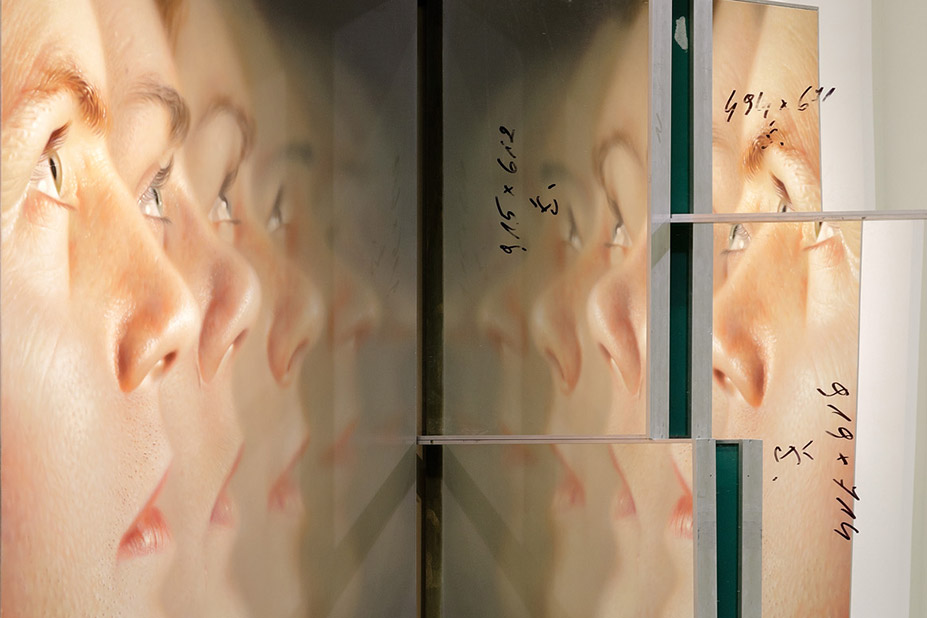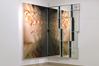 Believers. 2005-2007, oil painting on linen, mirrors, aluminum construction, 7' x 4' x 4'.