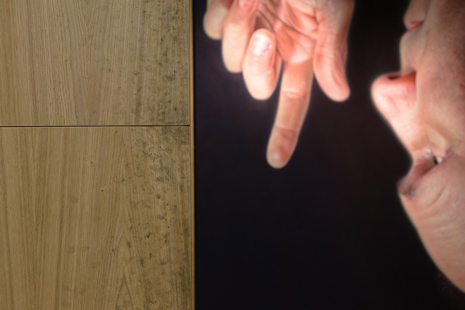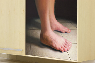 Balance (The Creation of Man). 2011, oil painting on linen, tables, 5.5' x 6.5' x 7.5'.