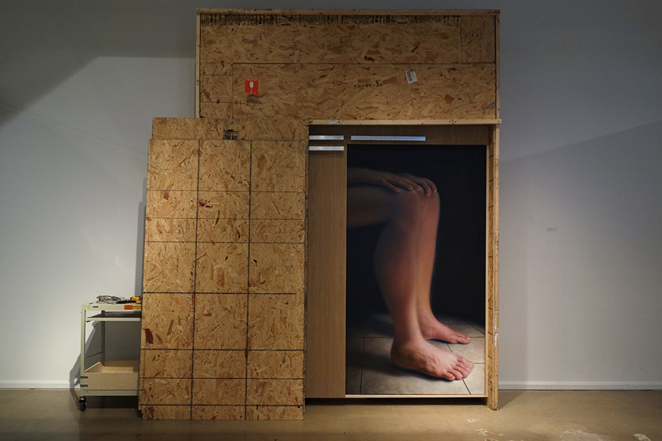 Ina. 2008-2011, oil painting on linen, lockers, 8' x 11' x 2'.