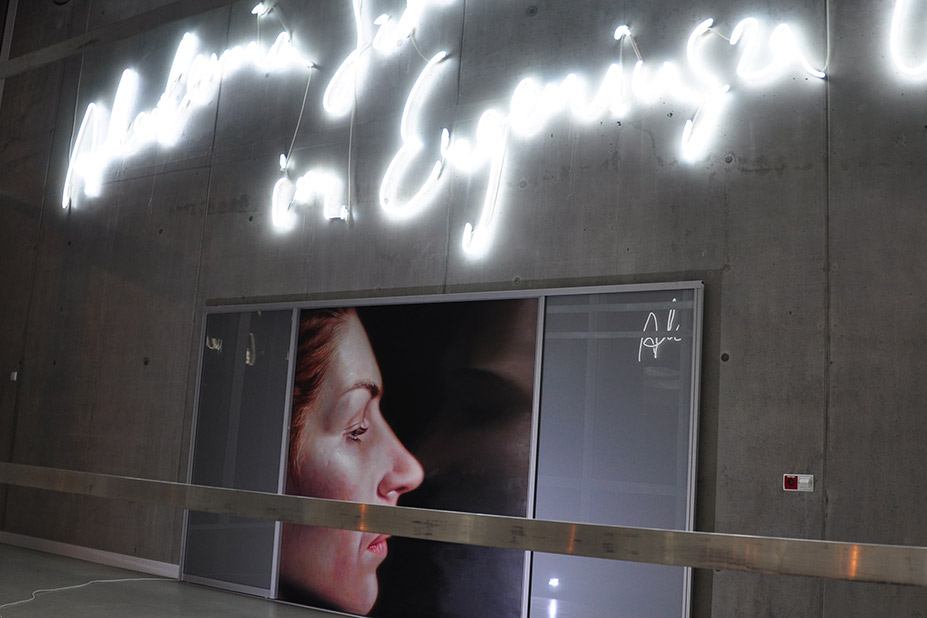 Door. 2005-2012, oil paint on linen, chairs, 4' x 7' x 4.5'.